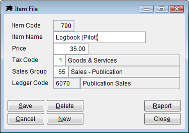 The Flight Code file stores numbered flight descriptions for all flight types and is used on each flight invoice input. In the long term, this information is valuable for tracking a students progress through his/her flight training as every charged flight has a description code...